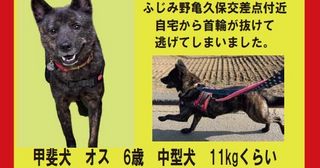 10/6(日) 19時頃より「ふじみ野市亀久保交差点」近くの自宅から逃げてしまったとの情報です。